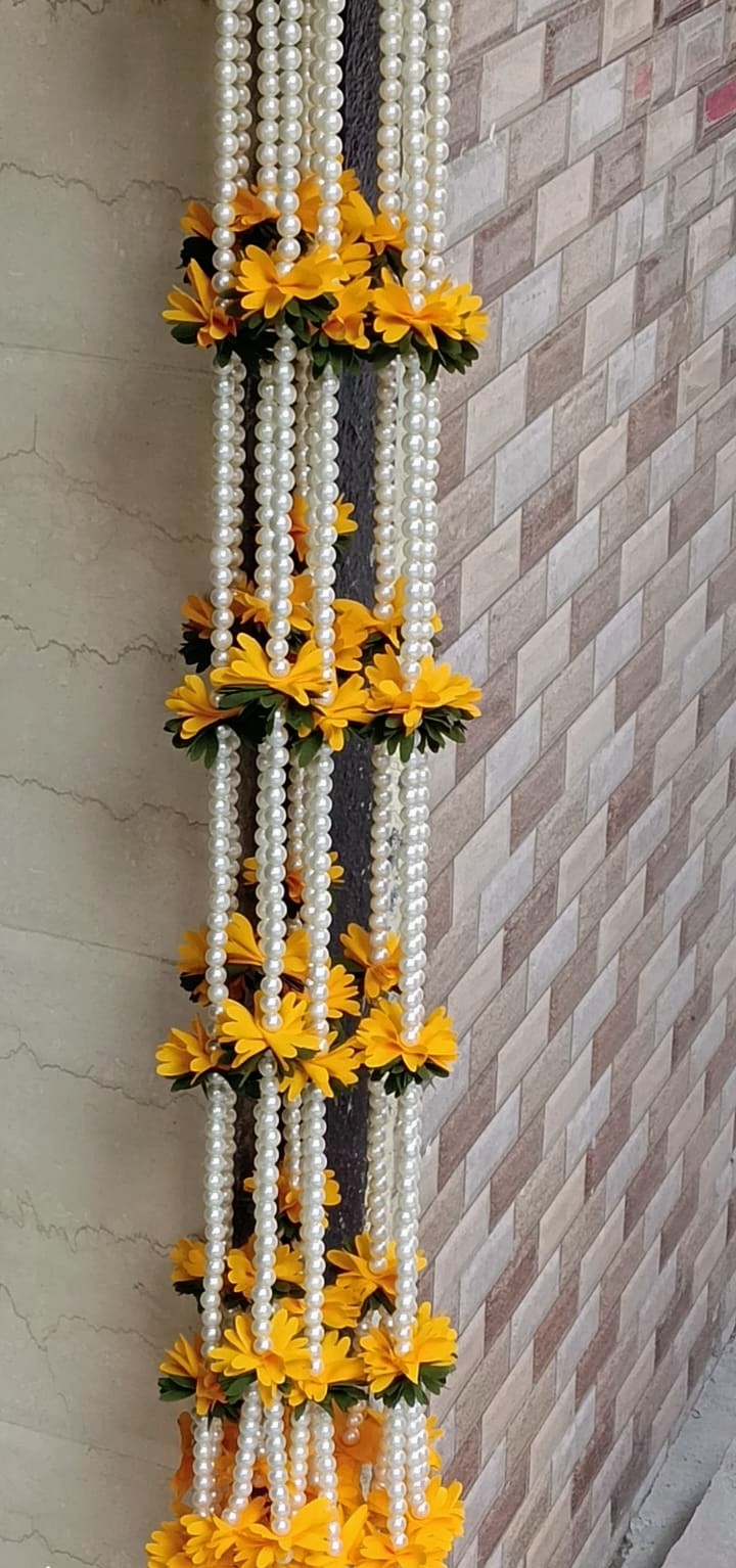 Handcrafted 5 Ft Yellow Floral Pearl Hangings – Set of 10 | Long Decorative Tassels for Home, Wedding & Festive Decor